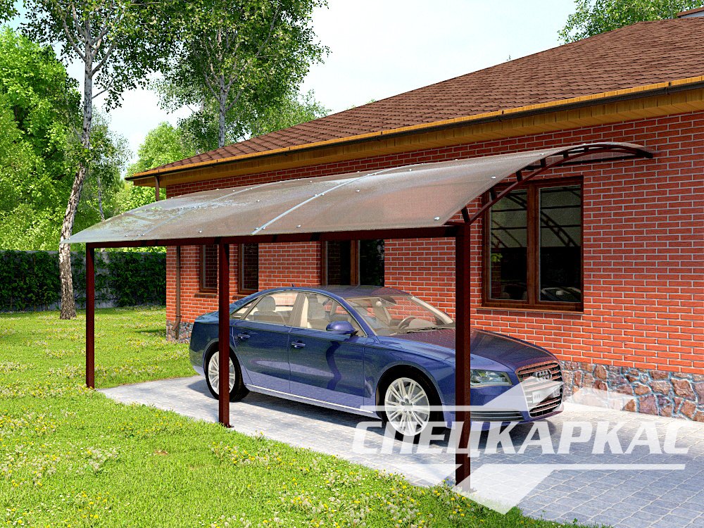 Оригинальная и стильная конструкция навеса для автомобилей «Барс» - лучшее решение для ценителей изящности и целостности архитектурной композиции участка.